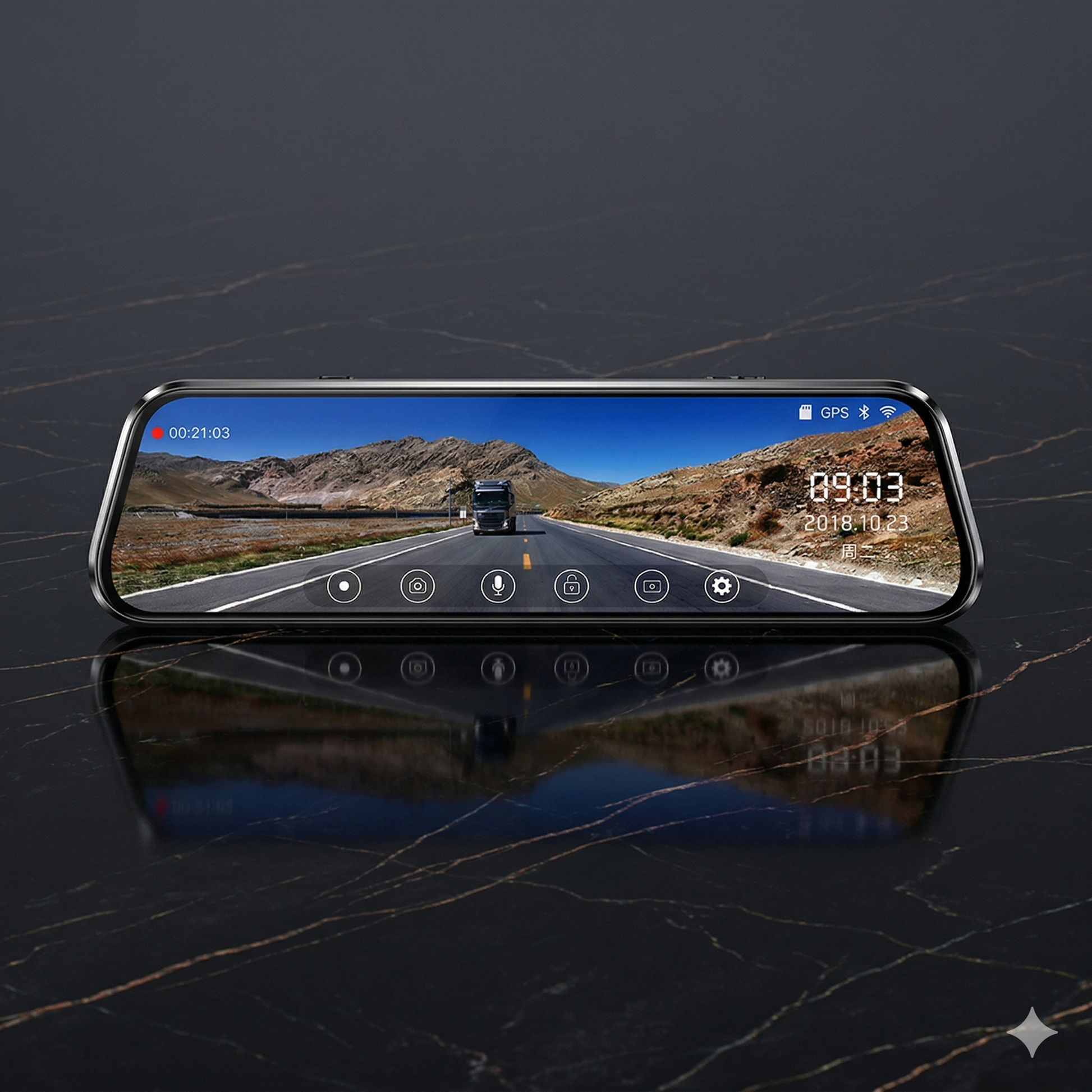 Graba cada viaje, protege tu vehículo ante imprevistos y estaciona con confianza. El retrovisor inteligente que tu auto estaba esperando.