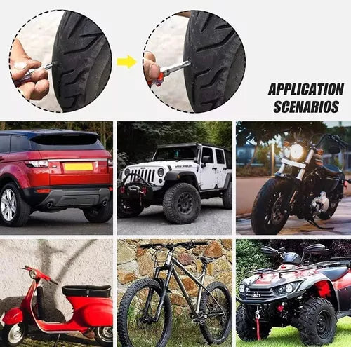 Con Nuestros Clavos de Reparación de Neumáticos al Vacío, podrás enfrentar cualquier situación sin estrés. Su diseño compacto y fácil de usar te permite sellar rápidamente cualquier perforación en el neumático, proporcionando una solución temporal hasta que puedas llegar a un taller.